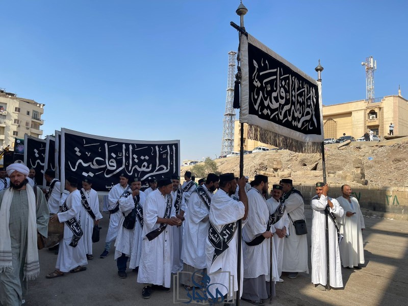 يتقدم الموكب كبار مشايخ الطرق الصوفية، حاملين الرايات والأعلام، يتبعهم جموع المريدين المنشدين للأناشيد الدينية والمدائح النبوية، في مشهد يعكس عظمة هذه المناسبة الدينية الجليلة.