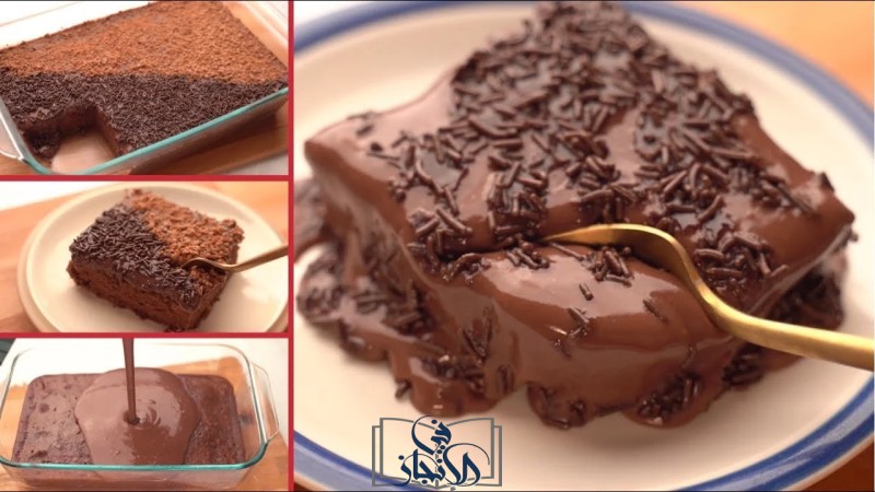 أثناء خبز الكيك، نحضر كريمة الشوكولاتة بخلط السكر، الكريمة، الكاكاو الخام، والزيت النباتي على نار هادئة حتى تتجانس. بعد أن يبرد الكيك قليلًا، نسكب الكريمة فوقه ونوزعها بالتساوي. يمكن تزيين الكيك بالفواكه، المكسرات، أو رقائق الشوكولاتة لإضافة لمسة جمالية. هذه الكيكة مثالية لتقديمها كحلوى بعد العشاء أو كوجبة خفيفة مع الشاي أو القهوة.